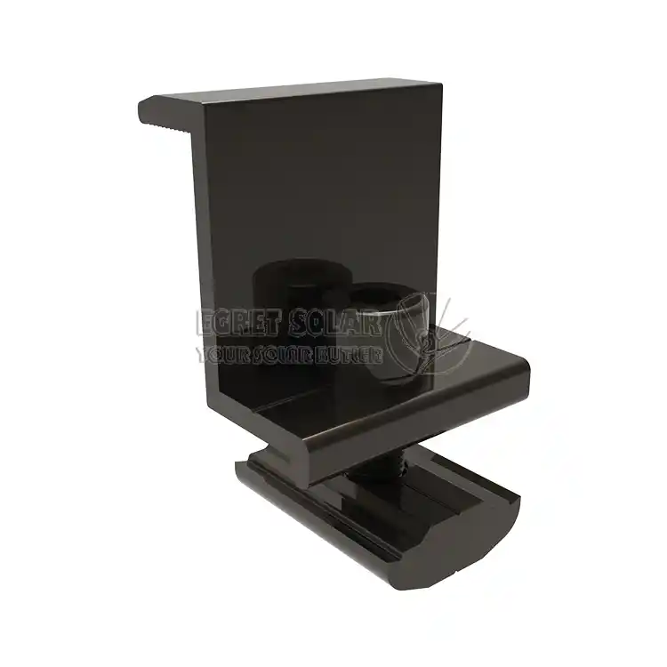 pince d'extrémité solairefixe le cadre de l'élément le plus extérieur de chaque rangée à l'extrémité du rail pour éviter qu'il ne glisse. Dans le même temps, appuyer sur les bords des composants contribue à réduire l'invasion du vent, de la pluie et de la poussière sur les côtés. Il est situé au bord du réseau et supporte directement la force de levage du vent (force de traction vers le haut) et la force d'aspiration du vent la plus forte. Il s'agit d'un point de force clé dans la conception résistante au vent et doit avoir une résistance mécanique suffisante.